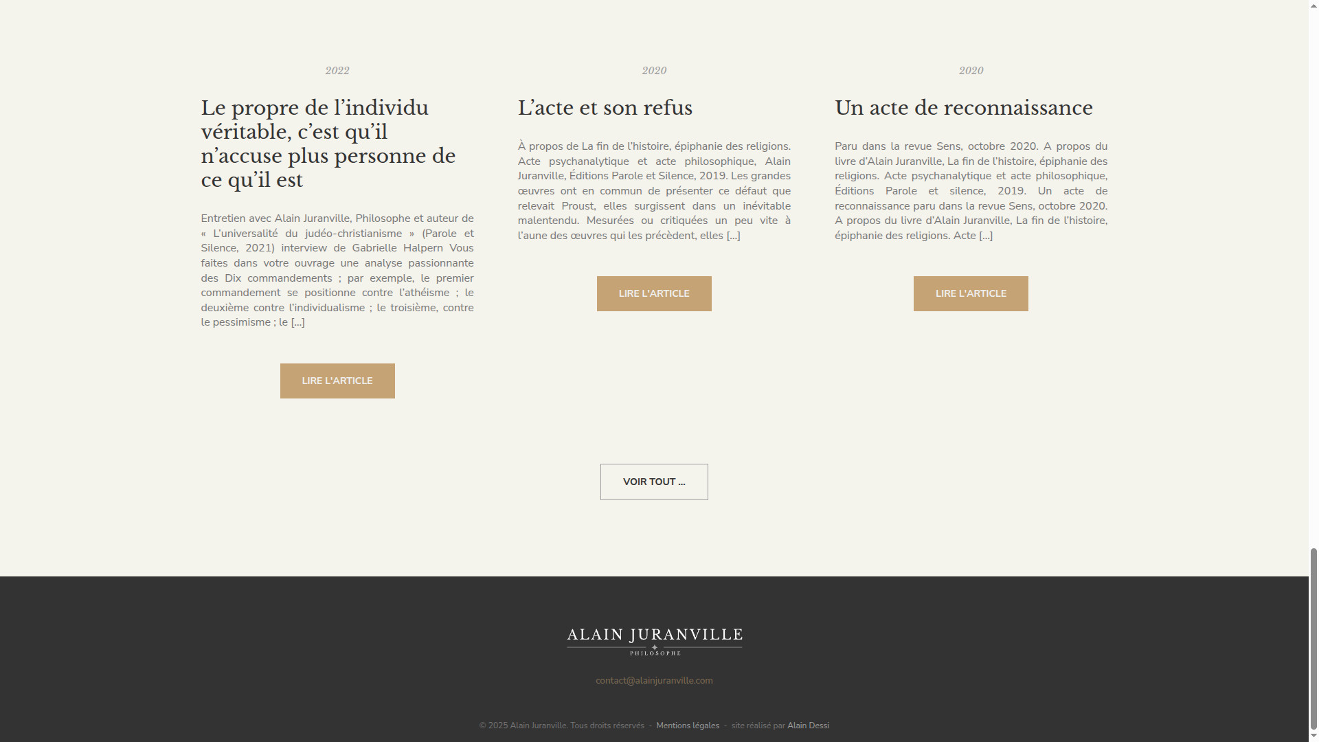 Création du site officiel du philosophe Alain Juranville, auteur d’ouvrages de référence sur la psychanalyse et la philosophie contemporaine. Le site a pour objectif de présenter sa pensée, ses publications et ses conférences à travers une approche claire, épurée et respectueuse de son univers intellectuel.