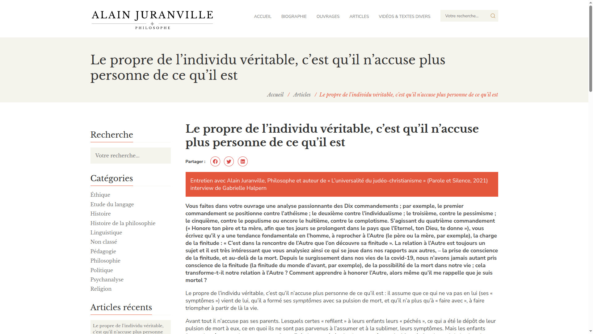 La structure du contenu s’appuie sur des modèles personnalisés (publications, actualités, citations, extraits d’ouvrages) et une navigation fluide centrée sur la lecture.